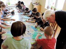 24.aprīlī atbalsta centru apmeklēja Balvu pilsētas gleznotājs un fotogrāfs Niks Gorkins. Sirmais mākslinieks bija ieradies mūsu iemītniekiem novadīt gleznošanas pamatu meistarklasi. Ar lielu aizrautību bērni pildīja gleznotāja norādes un drīz vien tika radītas daudzas skaistas dabas ainavas. Nodarbībai beidzoties,  mākslinieks analizēja katru darbu, katra bērna veikumā atrada nianses,  par ko bērnu uzslavēt. Tas bija aizraujoši. Vēlāk, tiekoties ar speciālistiem, N.Gorkins pastāstīja, ka vienam no mūsu bērniem ir īpašas dotības. Šo informāciju nodevām tālāk gan bērna mātei , gan sociālajam dienestam. Atvadoties mūsu viesis dāvāja centram savu fotoreprodukciju ar īpašu nosaukumu – „Rasas pērles”. Pateicamies  par sirsnīgo tikšanos gan N. Gorkinam, gan mākslinieka kundzei Edītei Gorkinai.