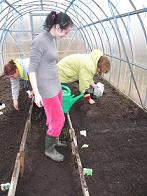 Šogad pavasaris nāca ļoti ilgi, nevarējām vien uzsākt stādīšanas un sēšanas darbus. Mēneša sākumā, tikko kļuva siltāks, projektā „Piepildīsim kopā sapni par saticīgu ģimeni” iesaistītās sievietes darbojās centra apstādījumos, izgrieza nokaltušos zarus, kaisīja minerālmēslus košumkrūmiem un skujeņiem. Īpaši  lolotas pēc veiksmīgās pārziemošanas tika rozes. Visi priekšdarbi dārza darbu sezonai tika savlaicīgi  paveikti. Gan iesēti, piķēti un izaudzēti  puķu un tomātu stādi, gan sagatavotas stādīšanai puķu dobes un siltumnīca. Šobrīd centrālās ieejas pusē jau ir izstādītas samtenes. Šo puķu stādīšana jau ir kļuvusi kā tradīcija, jo samtenes  ilgi zied, un  spilgtie ziedi dara krāšņu galvenās centra ēkas ieeju.