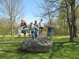 Beidzot esam sagaidījuši īsti pavasarīgu, siltu dienu, lai centra vecākie bērni varētu pastaigāties kaimiņnovada centrā un apskatīties Balvu pilsētas interesantākās vietas. Ekskursija pilsētā sākas no Lāča dārza, kur var apskatīt seno amatu darbnīcu, lielos kokgriezumus- lāčus, būves, tiltu uz Mīlestības saliņu, milzu laukakmeņus. Izejot cauri Lāča dārzam, bērni dodas uz parku.Tur apskata muižas ēku, lielo estrādi, nokāpj lejā pie Balvu ezera un iepazīstas ar tikko atklāto ierīci ūdenī, kur instruktora pavadībā var apgūt ūdensslēpju lietošanas knifus. Tiek aizstaigāts arī līdz Sporta skolas ierīkotajai peldvietai. Mūsējie aplūkoja Brīvības cīņu Latgales partizāniem veltīto pieminekli, izpriecājās pilsētas skvērā, centās izmērīt ozolu apkārtmēru un iegūt ozola enerģiju stiprumam. Tika ievērtēta arī Mākslas skolas audzēkņu izstāde. Noslēgumā visi apmeklēja kafejnīcu "Saldā dzīve", kur tika iespēja sajusties kā īsteniem pilsētniekiem- laiski baudīt smalkmaizītes, kūkas un saldējumu, malkot kafiju.