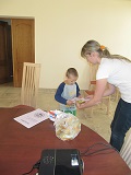 1. jūnijā audzinātājas Anželika un Ļesja bija sarūpējušas centra bērniem daudz un dažādas aktivitātes. Līdz pusdienām notika zīmēšanas uz asfalta ar krāsainajiem krītiņiem konkurss un jautrie starti. Pēc launaga bērni konferenču zālē skatījās filmu par pūķa un zēna draudzību, mielojās ar kārumiem, saldējumu, saņēma dāvaniņas un par dalību pasākumā un diplomus.
