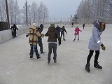 Centra bērniem februāra sākumā ļoti gribējās slidot, taču atkusnis Egļuciema pamatskolas slidotavas ledu padarīja neizmantojamu. Lai fiziskās aktivitātes neizpaliktu, bērni tika aizvesti uz peldbaseinu Balvos. Tā apmeklējums parasti raisa pozitīvas emocijas un pēc peldēšanās patīkams nogurums bērniem veicina saldu miegu klusajā stundā. Tā kā ne visi bērni prot peldēt, izmantojam peldbaseinā piedāvātos palīglīdzekļus. Pieaugušo uzraudzībā atrasties ūdenī ir droši un bērni ar prieku ļaujas ūdens vilinājumam. Kad pēc nedēļas pēkšņi uznāk sals, kaimiņpagastā esošā slidotava ir izmantojama. Ar skolas direktora E. Stalidzāna laipnu piekrišanu audzinātāju Andreja un Raivja vadībā "Rasas pērļu" bērni dodas slidot. Mūsu centram ir pietiekamā skaitā bērnu un pusaudžu slidas, pietrūkst lielo - 41., 42., 43. izmēru. Darbinieki no mājām atveda ģimenes locekļu slidas, lai visi varētu slidot vai spēlēt hokeju. 2 mūsējie uz slidām stājās pirmo reizi. Cik liels bija bērnu prieks par iespēju mācīties slidot! Atgriežoties centrā, visi bija gan piekusuši, gan gandarīti par lieliski pavadīto laiku.