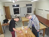 Audzinātāja Raivja vadībā Vecāku atbalsta mājas kokapstrādes darbnīcā mūsu jaunieši restaurē galdus. Klientu istabiņās galdi kopš centra atklāšanas 2009.gada 13. jūnijā līdzīgus darbus nav pieredzējuši. 7,5 gadu laikā galdu virsmas tika pakļautas mehāniskai iedarbībai, tajās var izlasīt gan istabiņās kādreiz dzīvojušo bērnu vārdus, gan redzēt dažādus zīmējumus un simbolus. Zēni vēlējās šo situāciju mainīt.Jaunieši vispirms mēbeļu virsmu norīvē ar smilšpapīru, ja nepieciešams izmanto slīpšvammes. Tad putekļi tiek noslaucīti un galdus notīra ar mitru drānu. Kad priedes koks ir sauss, sākas lakošanas darbi. Galdu lakošanai tiek izmantota RILAK Ekoakva pusmatēta laka uz ūdens bāzes, kas ir bez smakas un nožūst 1 stundas laikā. Lakošanas darbi jāatkārto vēl 2 reizes, lai iznākums visus apmierinātu. Jaunieši jau restaurējuši trešo daļu centra klientu istabiņu galdu. Vēl daudz darāmā!